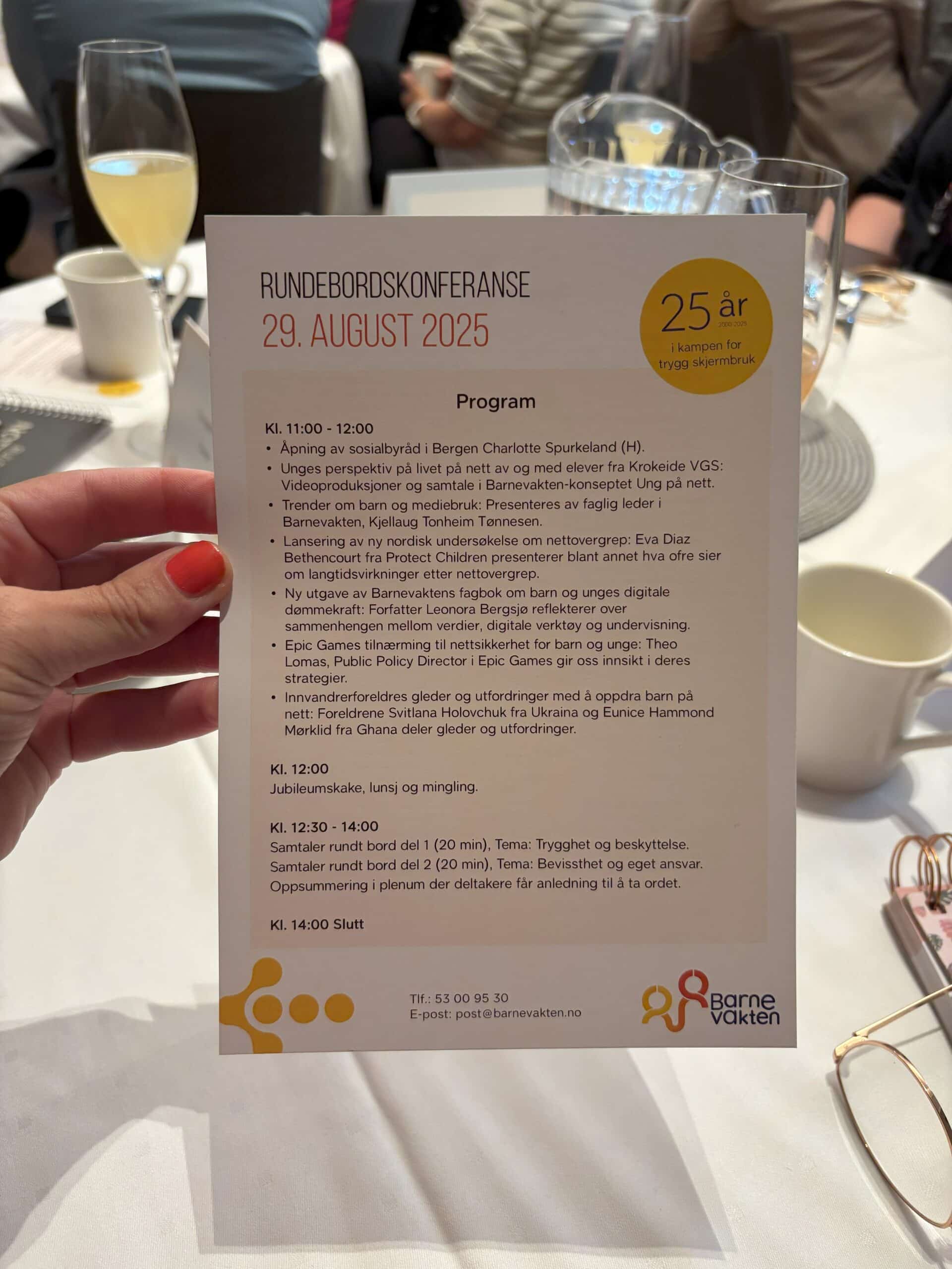 Barnevakten feirer 25 årsjubileum i år og i denne forbindelse inviterte de til jubileumskonferanse i Bergen 29. august. På gjestelisten finner vi personer fra næringslivet, samarbeidsorganisasjoner, Tech-aktører, offentlige etater og kommuner, samt representanter fra forskingsinstitusjoner og skoler.