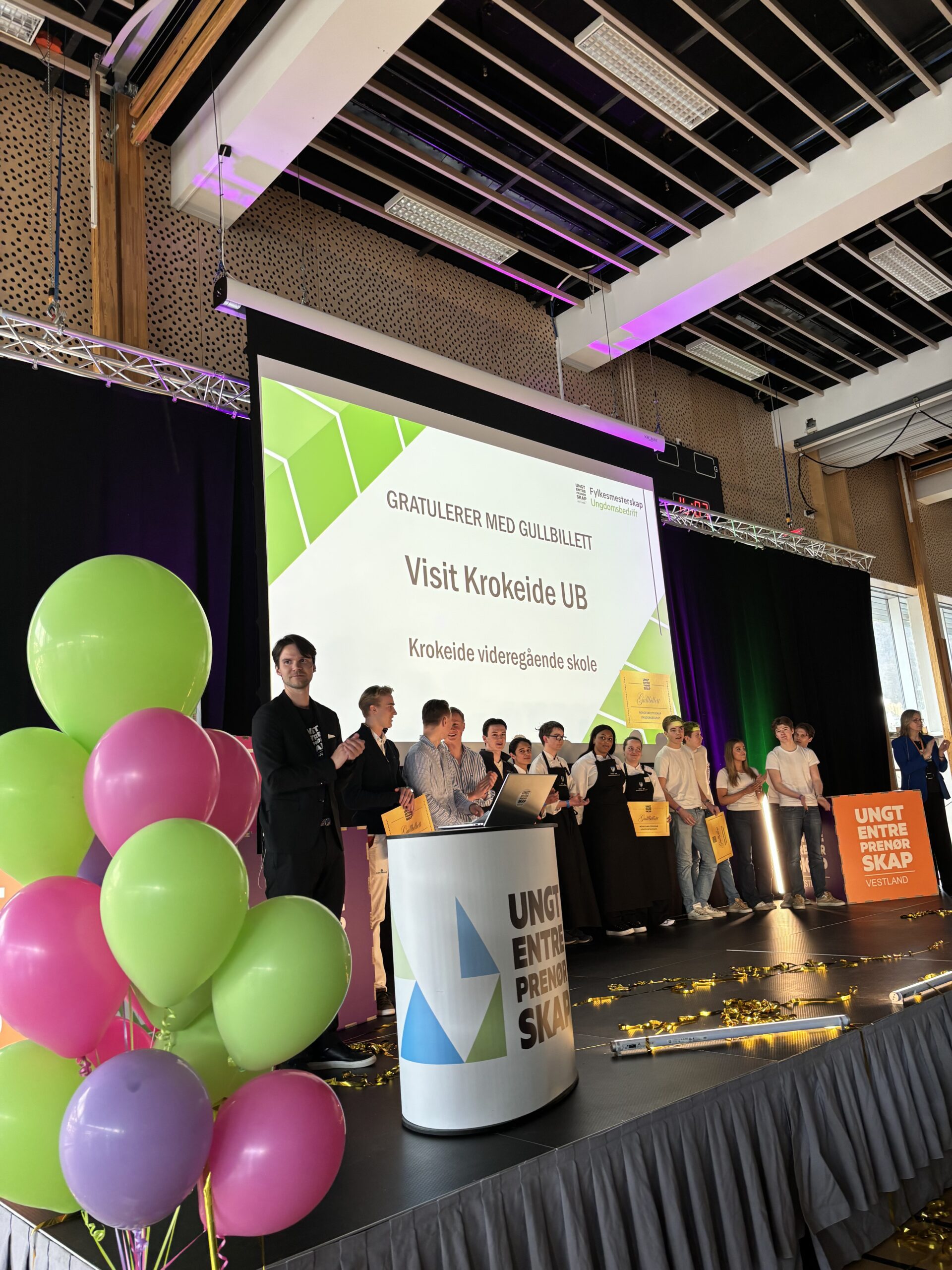 Som om ikke det var nok, har Visit Krokeide UB imponert dommerne så mye denne dagen, at vi vinner GULLBILLETT som gir oss deltakelse i NM i ungdomsbedrift på Lillestrøm i april 2025.