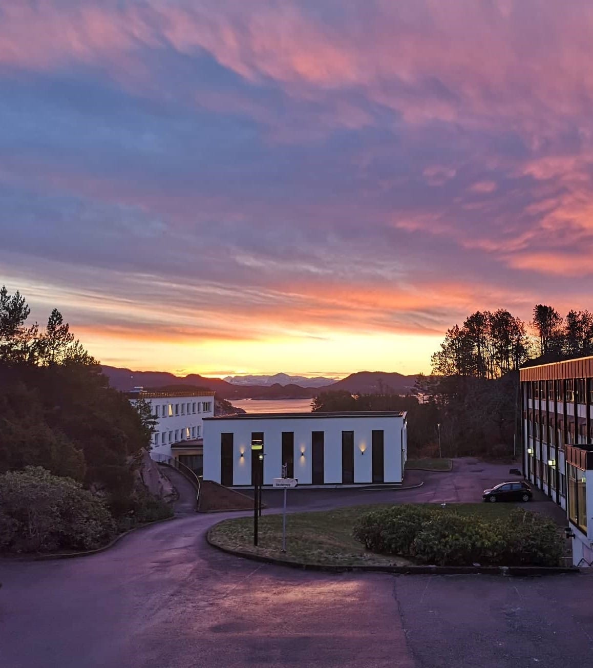 Det tar cirka 20 minutter å kjøre hit fra Bergen Lufthavn Flesland, og cirka 25 minutter fra Bergen sentrum. Lagunen Storsenter er lokalisert 10 km fra skolen.